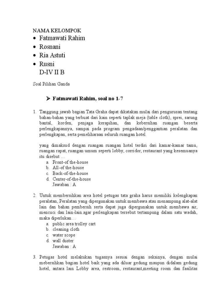 Contoh Soal Pilihan Ganda Tata Graha Atau Housekeeping Beserta Jawabannya Ilmuperhotelan Apa Yang Kamu Cari Ada Di Sin I