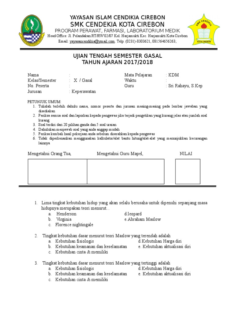 Soal Ujian Semester Ganjil Kelas Xii Keperawatan Kesehatan 2013
