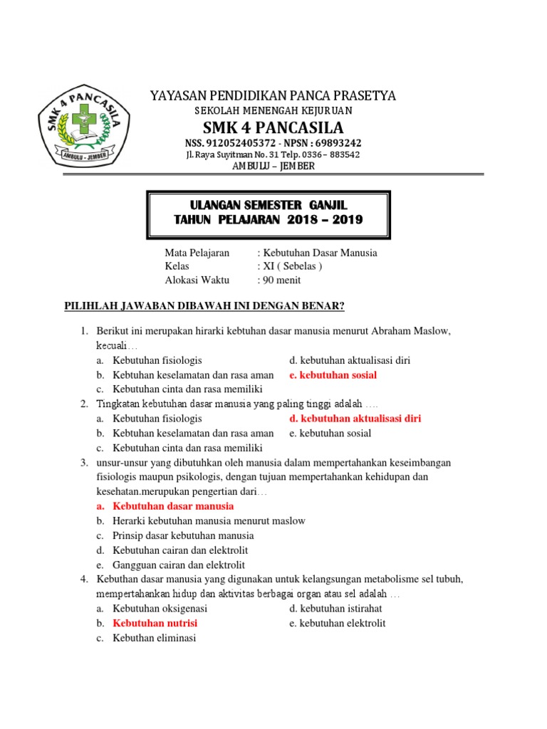 Contoh Soal Dan Jawaban Kebutuhan Dasar Manusia Ilmusosial Id