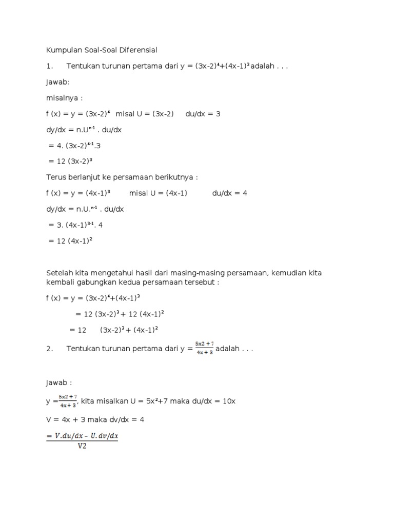 Soal Dan Jawaban Turunan Differensial Doc